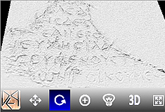 Move your mouse over the above viewer in order to interact with its features. You can move, rotate, zoom, and relight the exhibit by clicking on the proper icon and dragging your mouse over the inscription. Other options include 2D visualization of the heightmap of the inscription as well as full screen mode of the viewer.