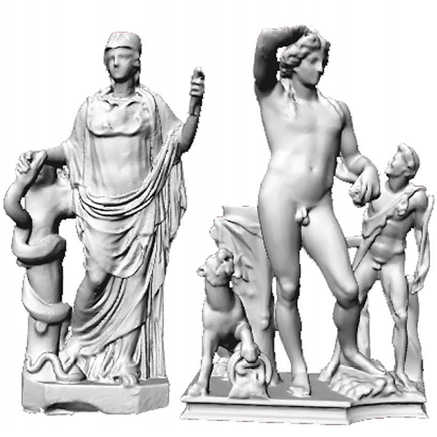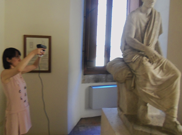 The DEA group in collaboration with the museum of Palazzo Altemps in Rome, Italy1 digitized in 3D statues from three of the collections housed in the museum: Boncompagni Ludovisi collection, Mattei collection, and Altemps collection. The digitization was performed using low-cost infrared depth sensors for iPad and XBOX by manually moving the sensor around the sculptures in order to capture their tridimensional form.