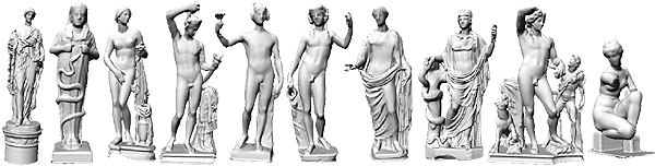 This figure shows selected samples from our dataset of 3D digitized statues.