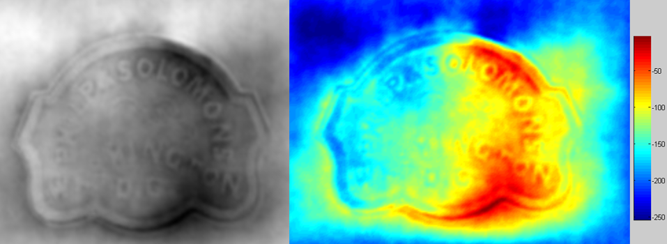 Examples of two different 2D visualizations (heightmap and color heatmap) of the 3D reconstructed embossment of PHILPS & SOLOMONS using the Digital Epigraphy Toolbox4.